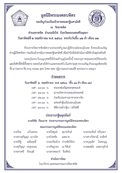 หมายเลขบัญชีการบริจาคเพื่อสมทบทุนบูรณปฏิสังขรณ์ วิหารพระมงคลบพิตร |