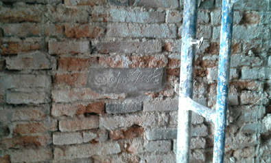 เก่าที่ชำรุดทรุดโทรมออก เพื่อเตรียมการฉาบปูนฝาผนังและเสาใหม่ |