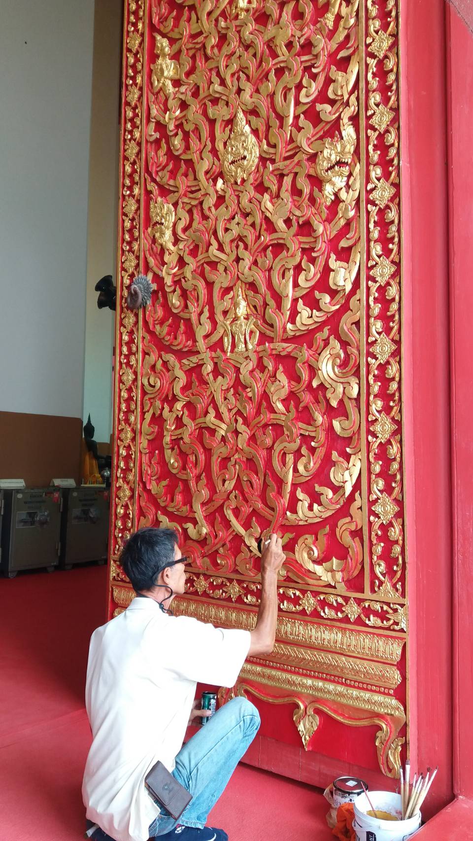 ประมวลภาพการปรับปรุงบานประตูหน้าต่าง โดยการทำความสะอาด ซ่อมการลงรักปิดทอง การติดแผ่นพลาสติกใสทับลวดลาย รวมทั้งการทำความสะอาดซุ้มประตู และบันไดทางขึ้น |